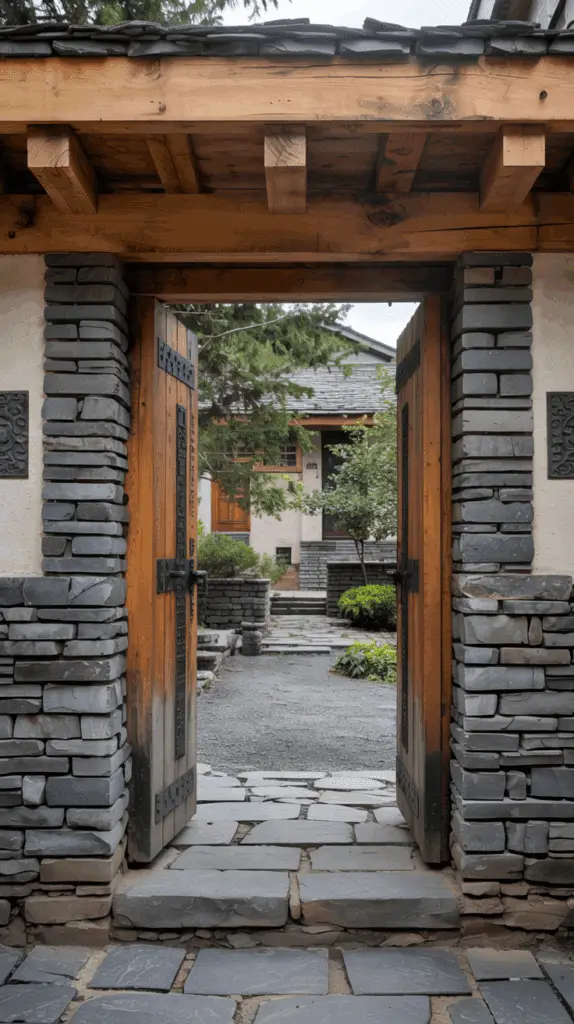 6. Courtyard Gate with Stone Pillars and Timber Lintel