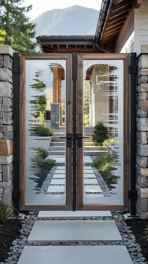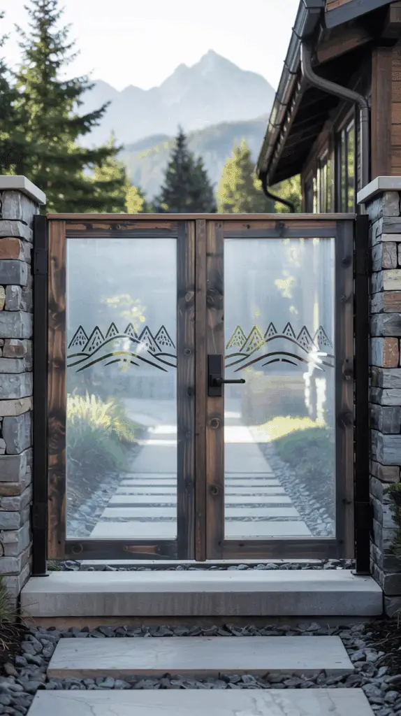 The trick here is balance. The gate should be simple, not showy. Maybe you etch a subtle mountain line or a few vertical brush-style strokes into the glass. That’s it. Let the materials do the work.
