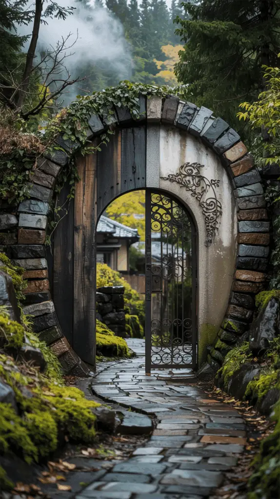 There doesn’t even need to be a swinging gate here. It can just be an open frame. What matters is the weight of the materials and how they feel as you walk through. If you’ve got a gravel path winding up to your house, this makes the whole thing feel intentional, like it’s guiding you inward.