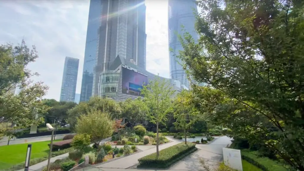 Before heading up, I spent a little time exploring the surrounding area. It’s right in the heart of Lujiazui, Shanghai’s financial district. This is the part of the city you often see in postcards and videos—glass towers everywhere, wide open spaces, and beautifully landscaped city parks.