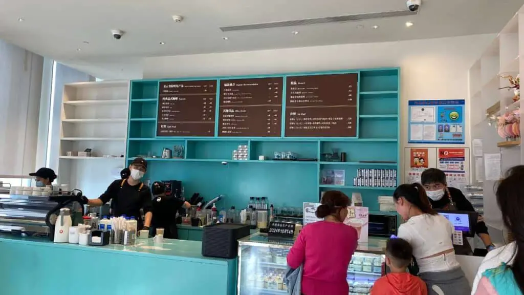 To step outside onto the balcony, you’re asked to purchase something from the café. The drinks are slightly pricier than your average coffee shop in China, but still very reasonable—especially compared to Western prices. I got a simple latte and sat on a bench watching the sun begin to set over the skyline. It was quiet, peaceful, and completely surreal.