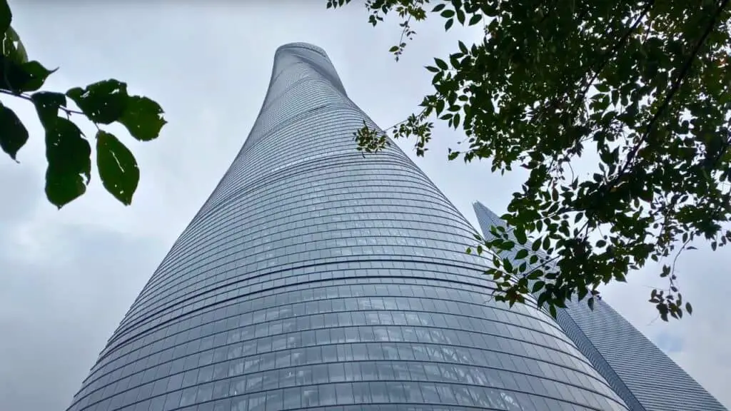 You can also get some great photos of the Shanghai Tower itself from ground level. Looking up, the building seems to twist up endlessly into the sky. It’s actually the second tallest building in the world, reaching over 2,000 feet. And the design is really beautiful—like a spiral ribbon made of glass and steel.